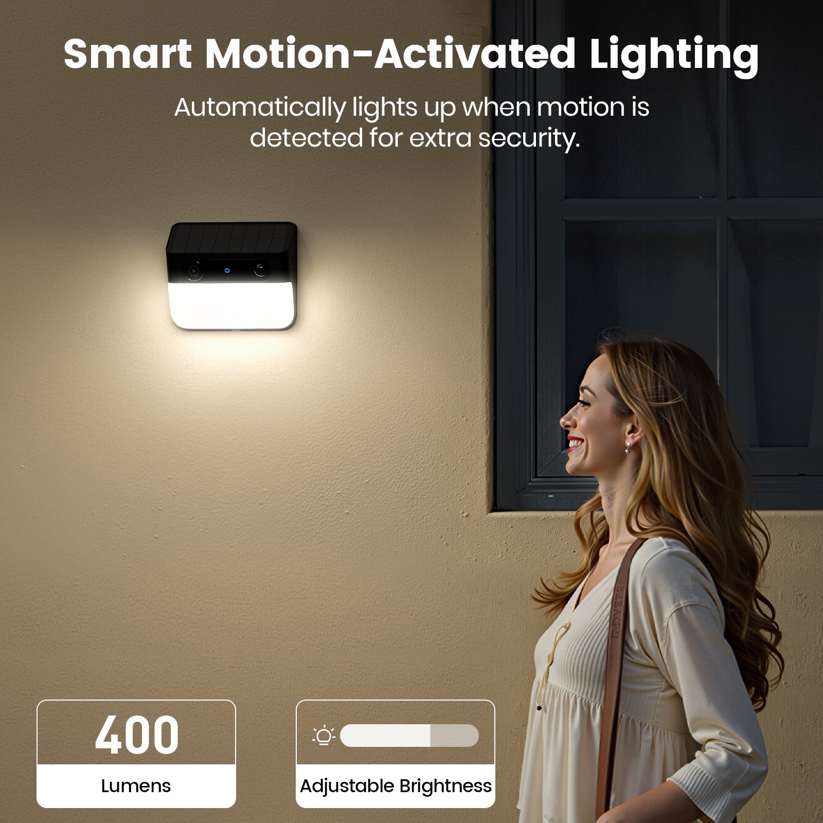 • Reliable Solar Power, Day After Day: The outdoor wall light camera features a solar panel and a built-in battery.