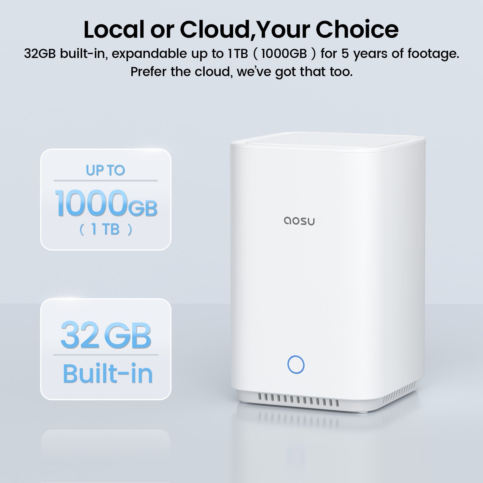 • Smarter, Safer Homebase with No Fees: Connect up to 6 cameras with 100% local storage—32GB included, expandable to 1TB. No monthly fees, no cloud needed