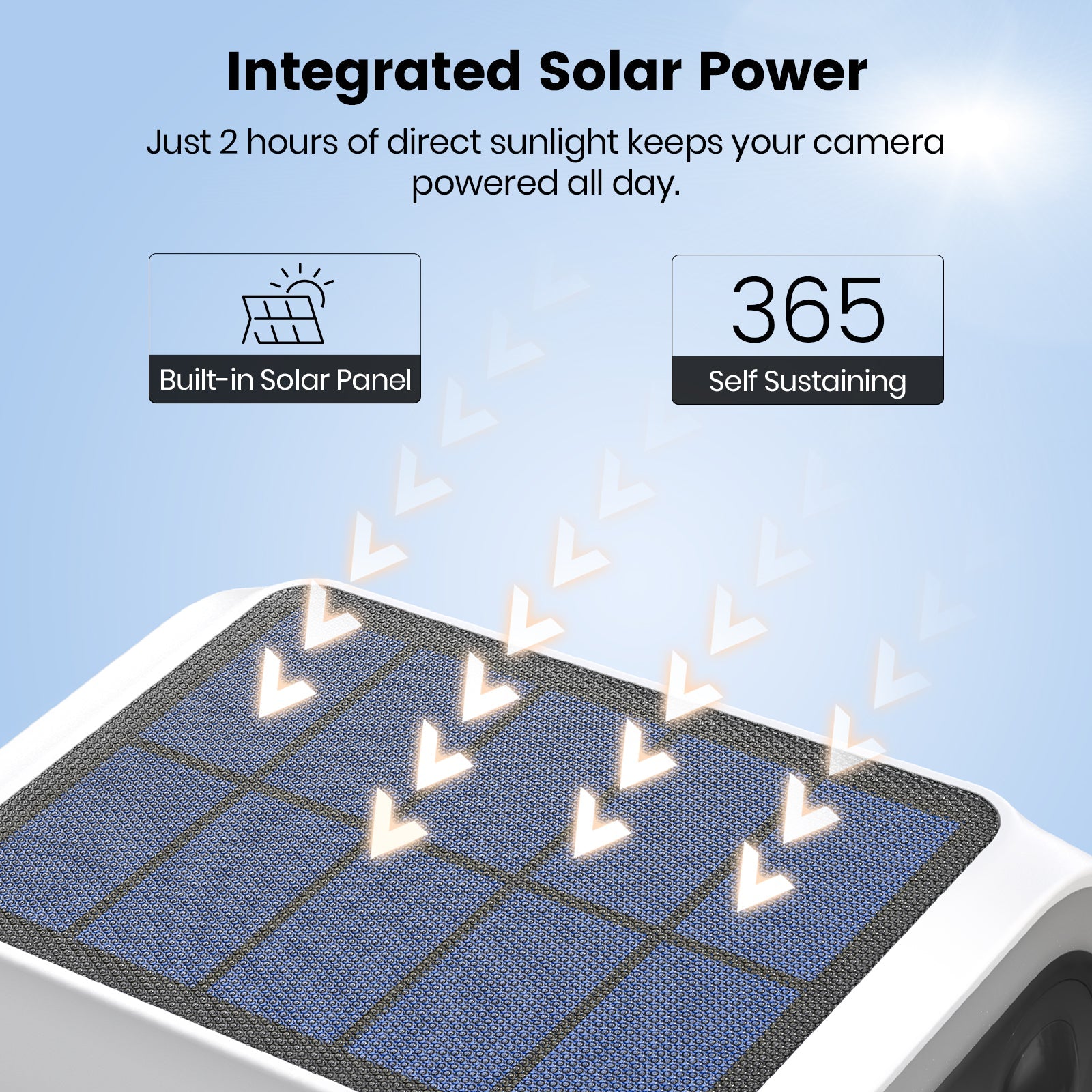 • Integrated Solar Power: Easy setup with a built-in solar panel; two hours of direct sunlight provides year-round, self-sustaining power with no maintenance or recharging.