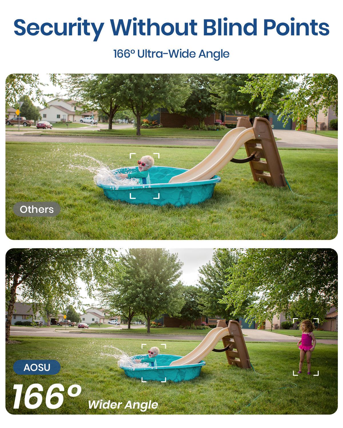 • Complete Coverage: Cover every corner with the 166° wide-angle lens that eliminates all blind spots.